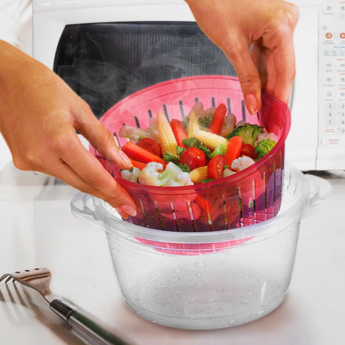 PANELA PLÁSTICA 1,5 L COM CESTO PARA LEGUMES PARA MICRO-ONDAS