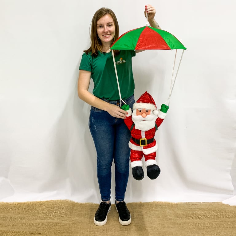 Mais medidas PAPAI NOEL: 56 CM. PARAQUEDAS ABERTO: 20X50 CM, FEVHADO:32X4 CM.