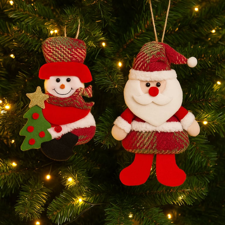 PAPAI NOEL / BONECO DE NEVE 18 CM COM ÁRVORE DE NATAL