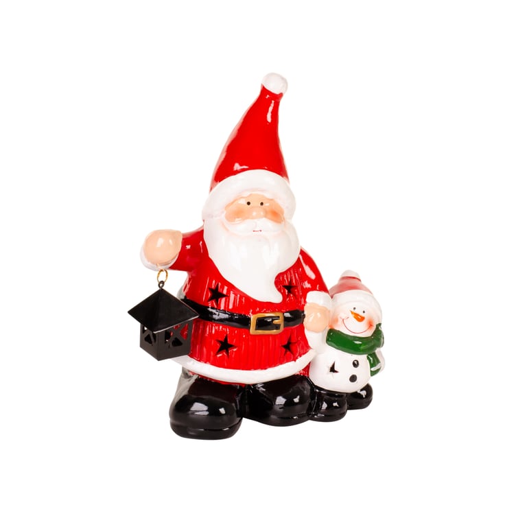 PAPAI NOEL E BONECO DE NEVE CERÂMICA 25X18X10 CM COM LED COLORIDO