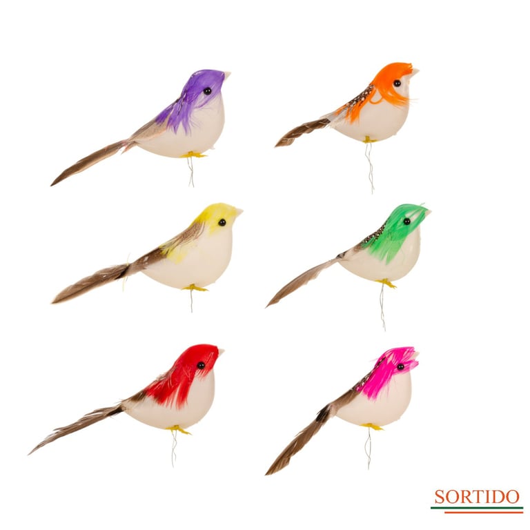 PÁSSARO 4X10 CM PENAS COLORIDAS