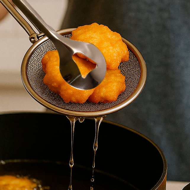 PEGADOR DE FRITURAS INOX 28X10 CM COM PENEIRA