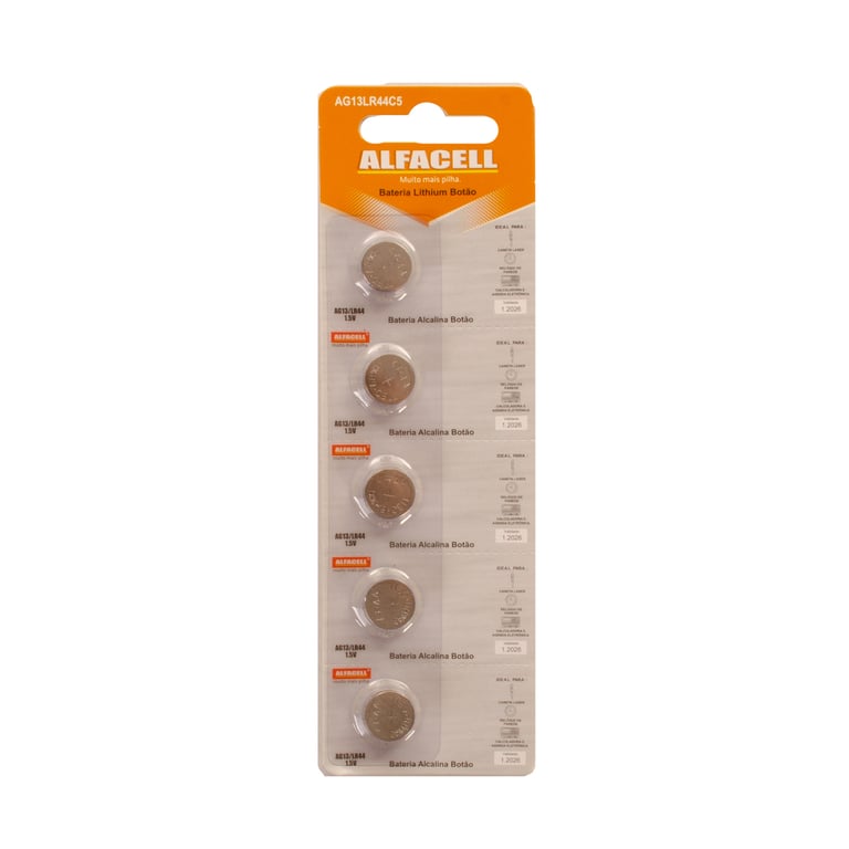 PILHA BOTÃO / BATERIA AG13LR44C5 5 PEÇAS ALCALINA LITHIUM