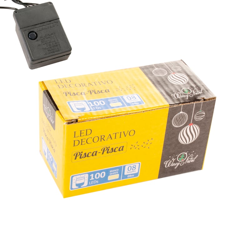 PISCA 100 LEDS BRANCO QUENTE 8 F 9 M FIO VERDE 220V