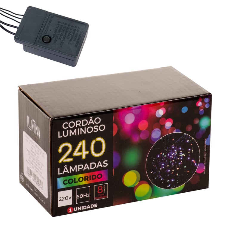 PISCA 240 LEDS COLORIDO 8 F COM FLASH / STROBO 5 M FIO PRETO 220 V