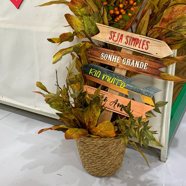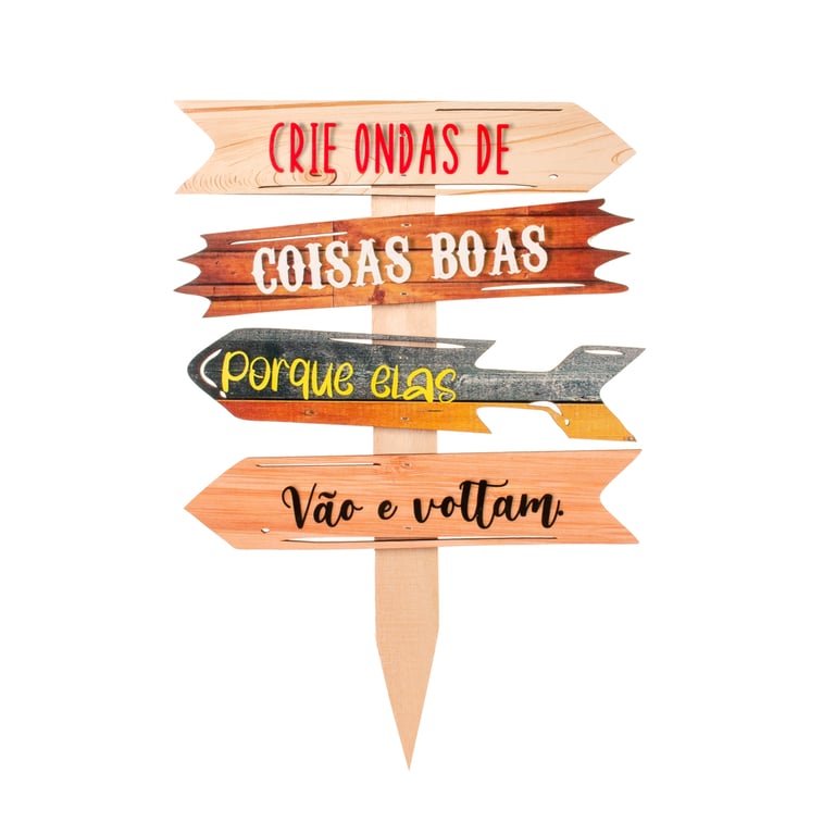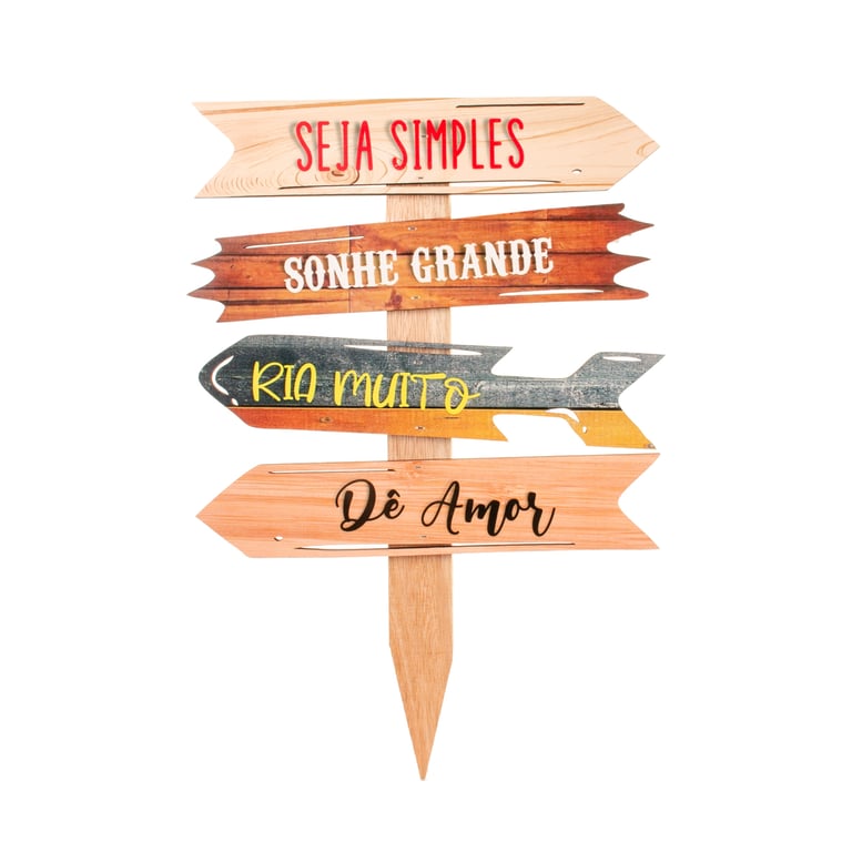 PLACA DECORATIVA 41X28 CM SETAS FRASES MADEIRA