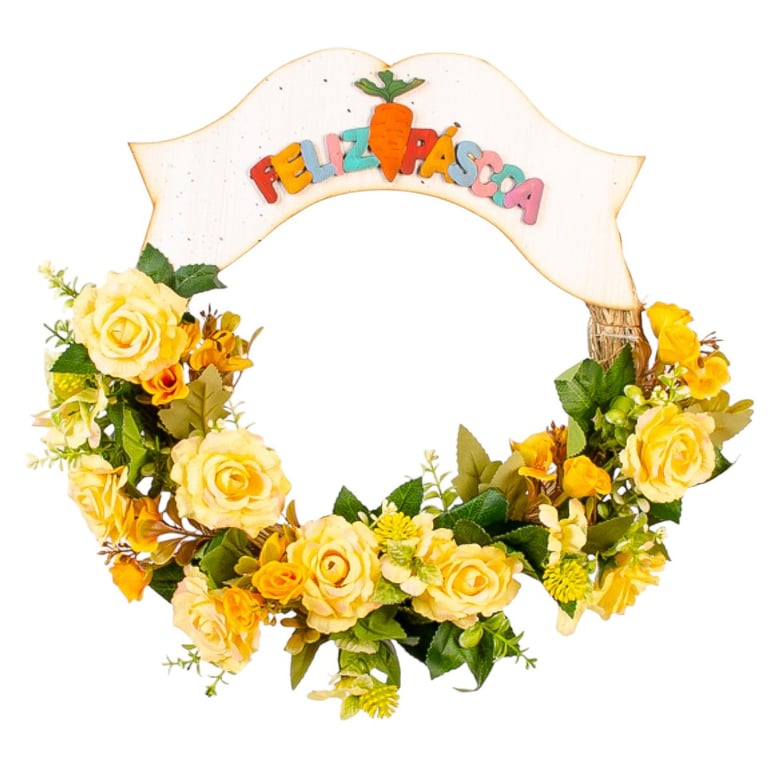 PLACA FELIZ PÁSCOA 14X30 CM MDF COLORIDA