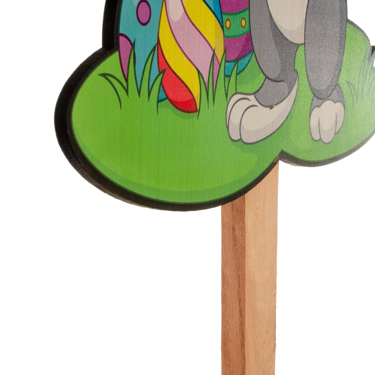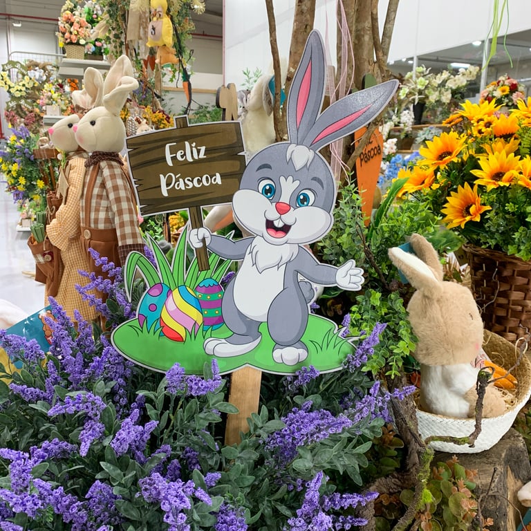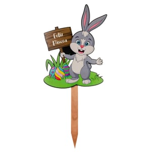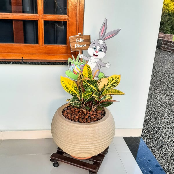 PLACA FELIZ PÁSCOA 77X31X2 CM NO JARDIM COM OVOS