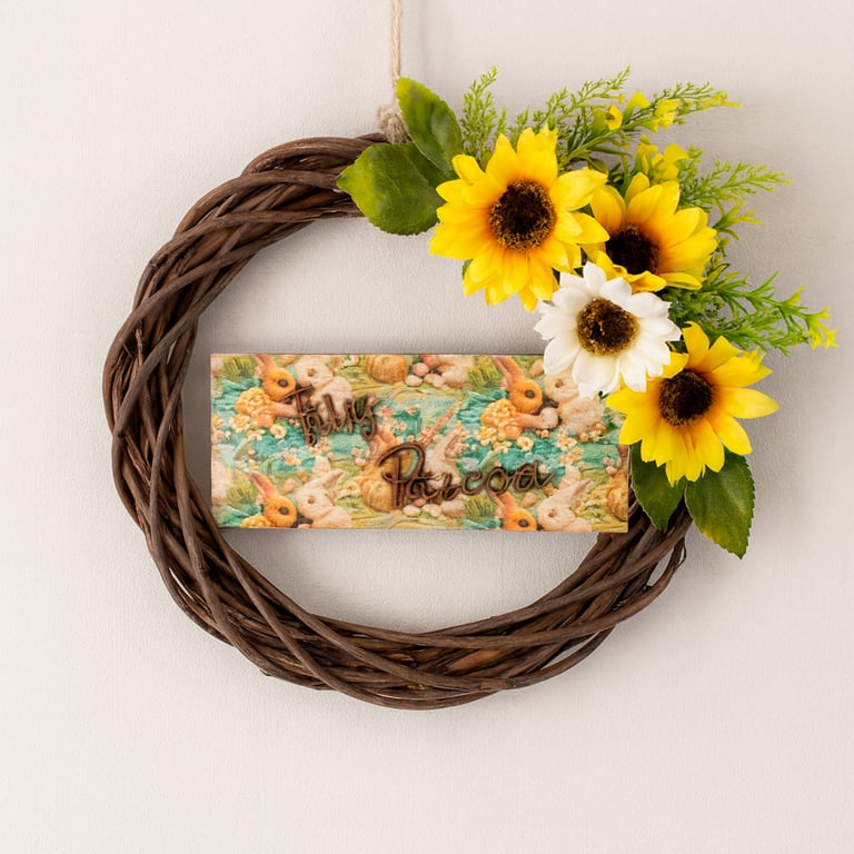 PLACA FELIZ PÁSCOA 8X19 CM MDF DECORADA