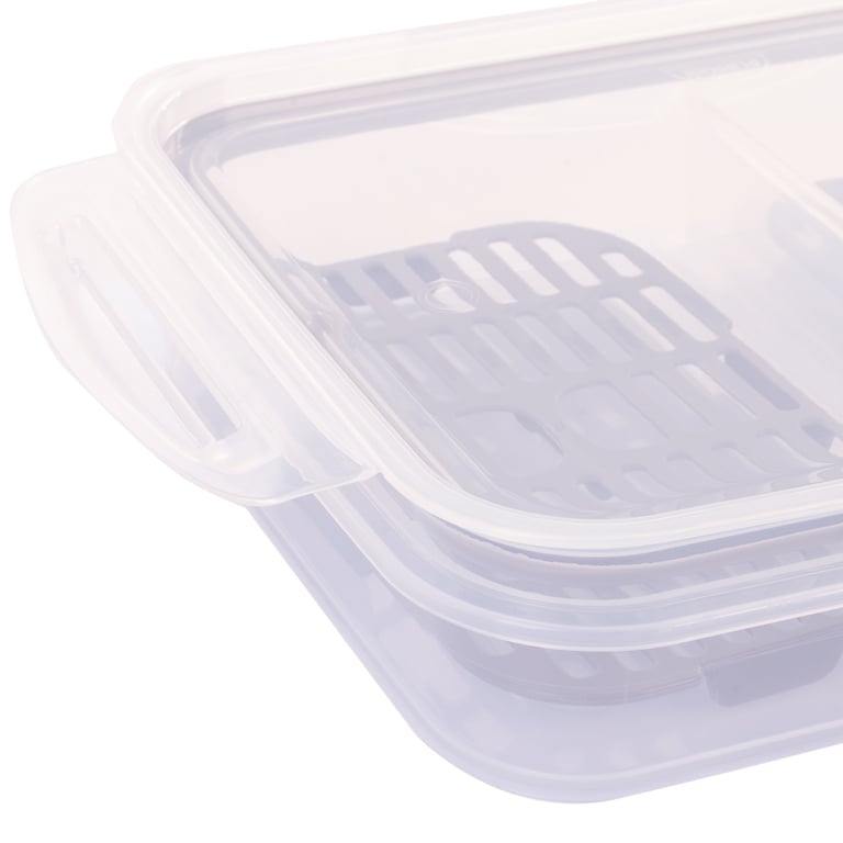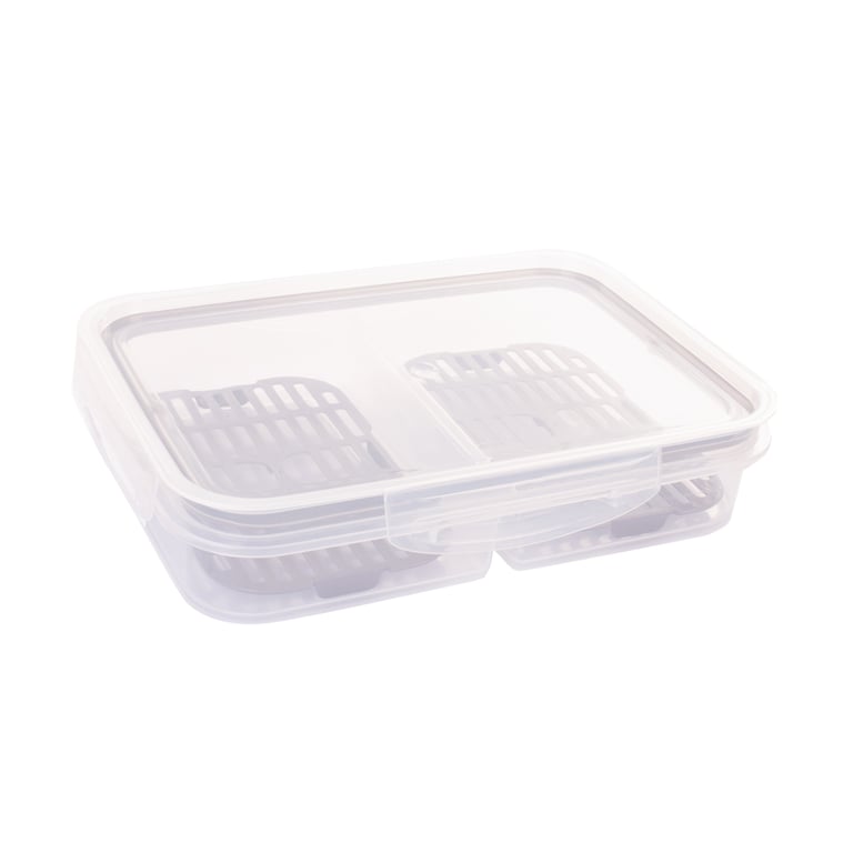 PORTA FRIOS PLÁSTICO 1 L RETANGULAR HERMÉTICO COM DIVISÓRIA TRAVAS E TELA
