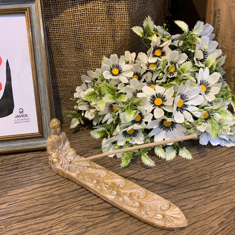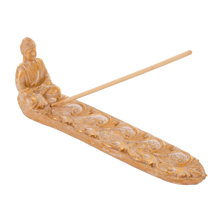 PORTA INCENSO RESINA 7,5X4,5X21 CM BUDA DOURADO