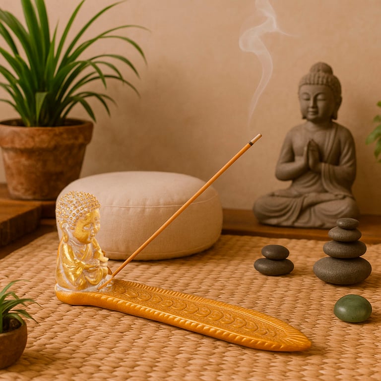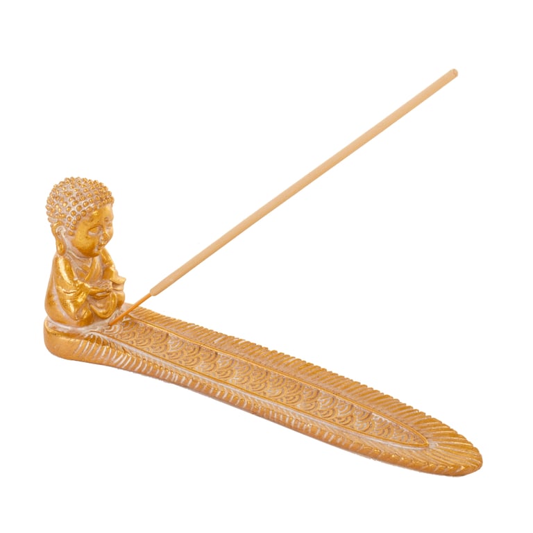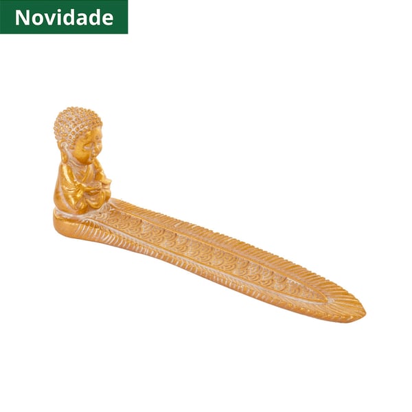 PORTA INCENSO RESINA 7,5X4,7X20 CM BUDA DOURADO