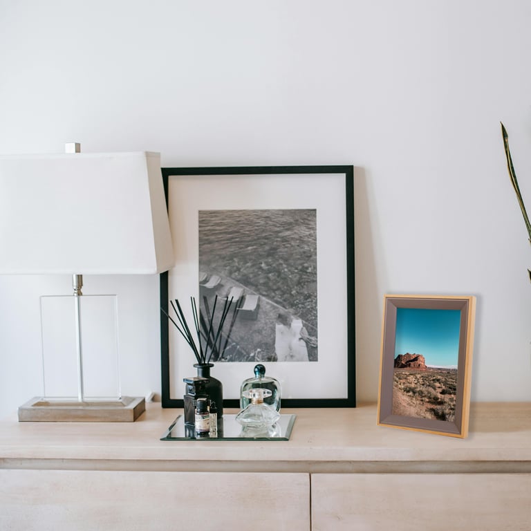 PORTA RETRATO 10X15 MDF BORDA CINZA COM BEGE VERTICAL / HORIZONTAL