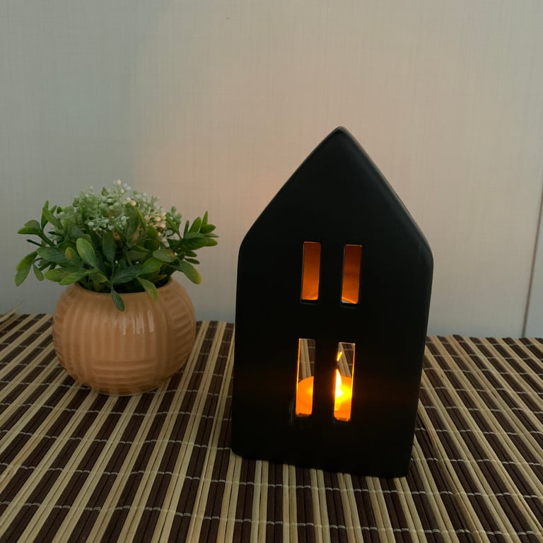 PORTA VELA / CASTIÇAL 15X8X6 CM CASA CERÂMICA LUMINÁRIA