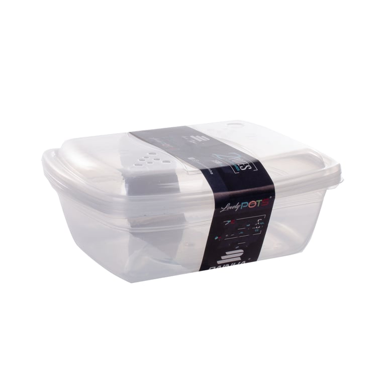 POTE PLÁSTICO 3 PEÇAS 700 ML RETANGULAR