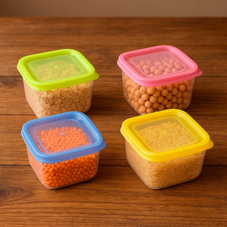 POTE PLÁSTICO 4 PEÇAS 85 ML RETANGULAR TAMPA COLORIDA