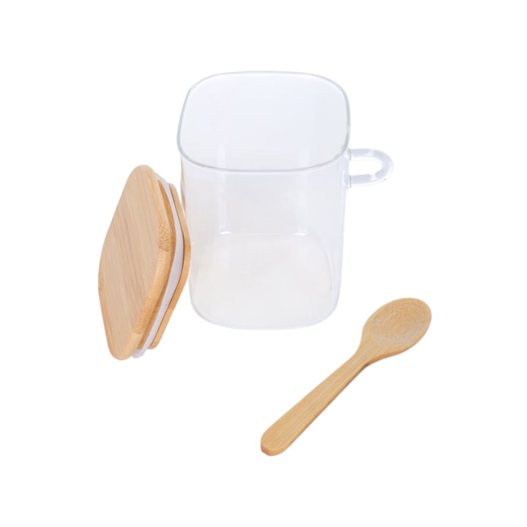 POTE VIDRO BOROSILICATO HERMÉTICO 500 ML COM COLHER E TAMPA BAMBU