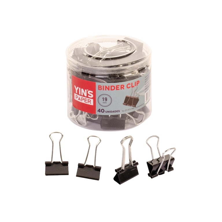 PRENDEDOR DE PAPEL CLIPS BINDER 19 MM 40 PEÇAS METAL PRETO NO POTE