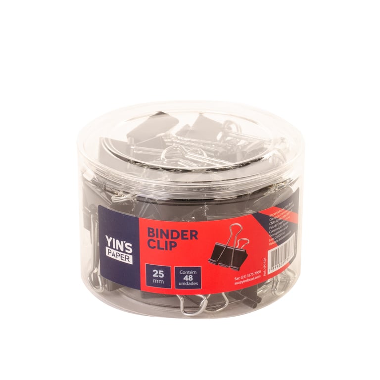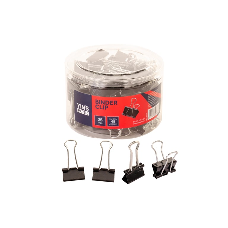 PRENDEDOR DE PAPEL CLIPS BINDER 25 MM 48 PEÇAS METAL PRETO NO POTE