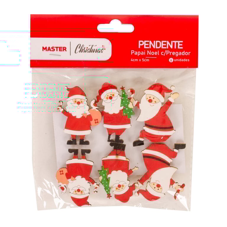 PRENDEDOR / GRAMPO MADEIRA 5 CM 6 PEÇAS PAPAI NOEL