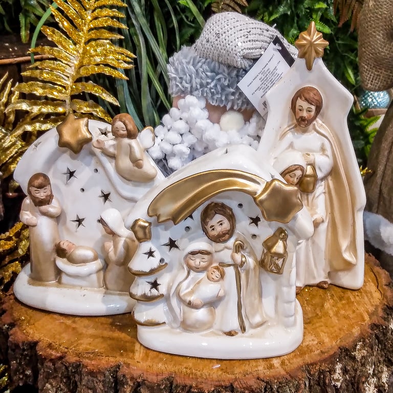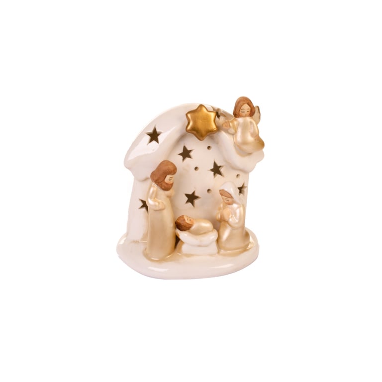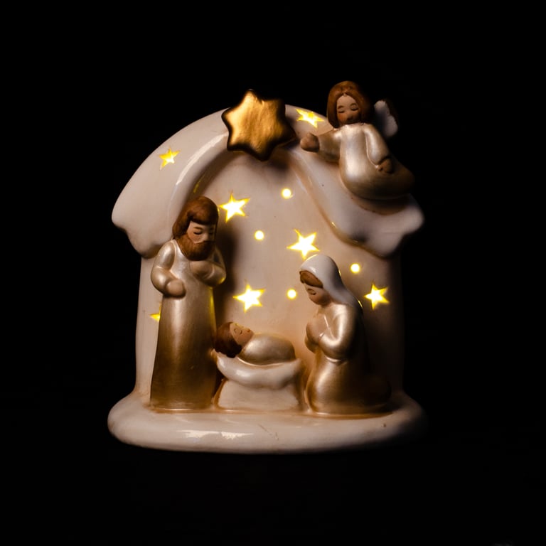 PRESÉPIO SAGRADA FAMÍLIA PORCELANA 14X12X9 CM COM LUZES
