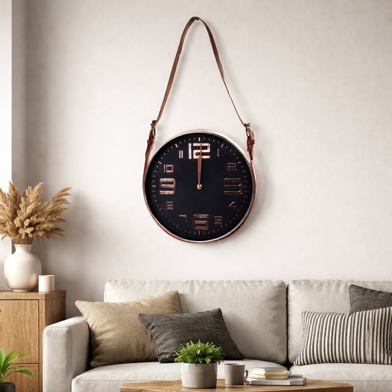 RELÓGIO PAREDE 30X6 CM CONTÍNUO COM ALÇA COURO FUNDO PRETO