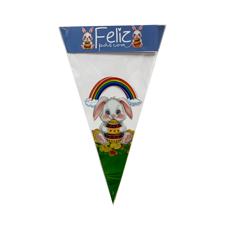 SACO POLI 15X30 CM CONE DECORADO PÁSCOA