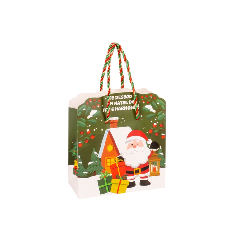 SACOLA NATAL 15,5X14,3X7 CM BORDA ONDULADA