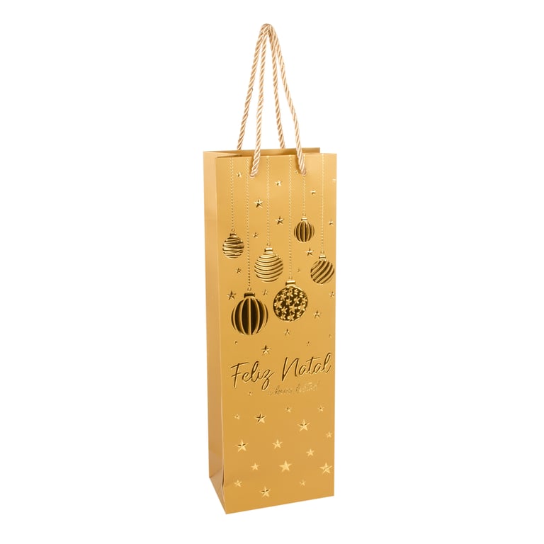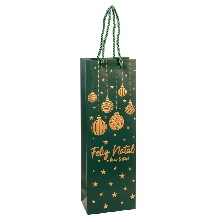 SACOLA NATAL 36X12X7 CM GARRAFA DECORADA EM RELEVO COM ALÇA