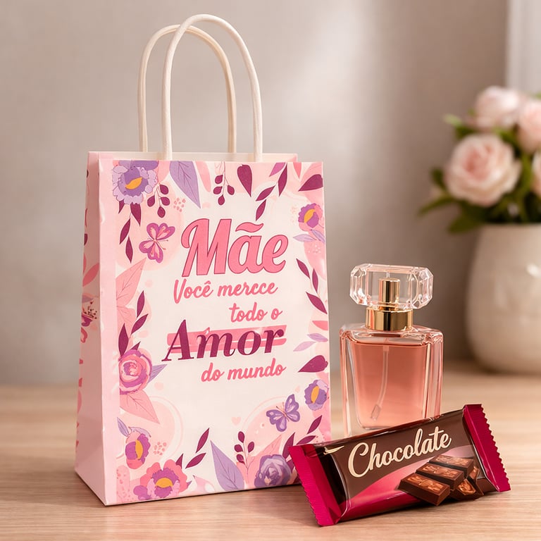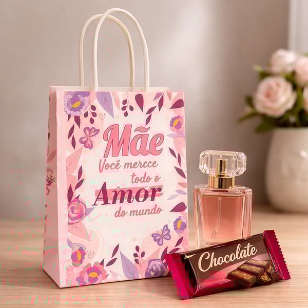 SACOLA PRESENTE 21X15X8 CM DECORADA MÃE FLEXÍVEL