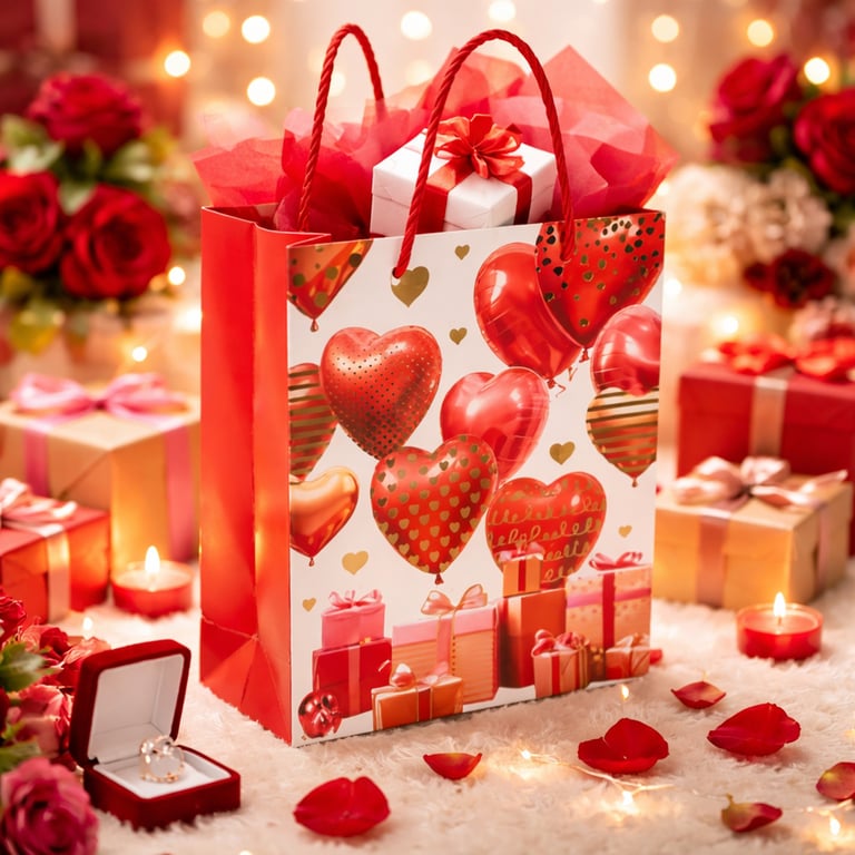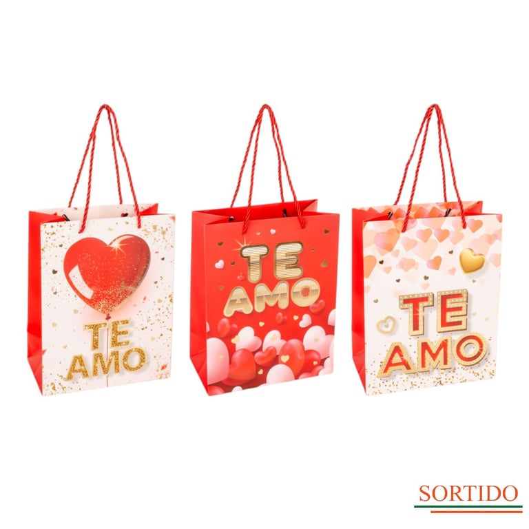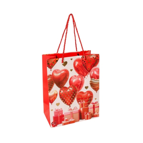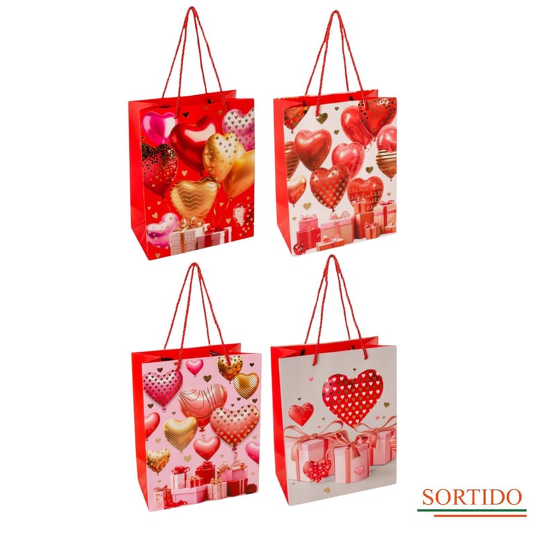 SACOLA PRESENTE 23X18X10 CM CORAÇÕES METALIZADOS CARTONADA
