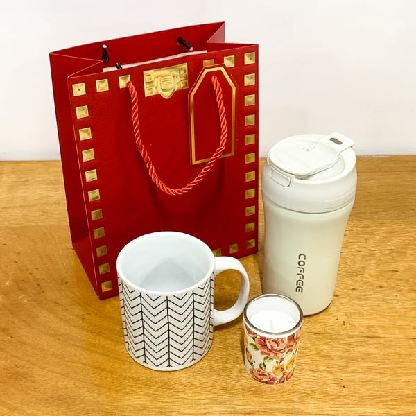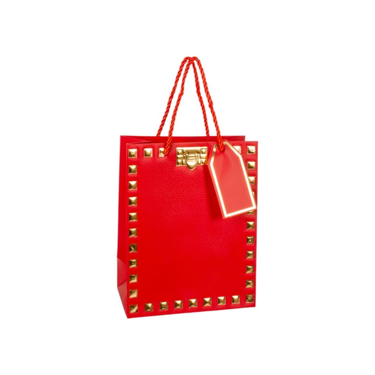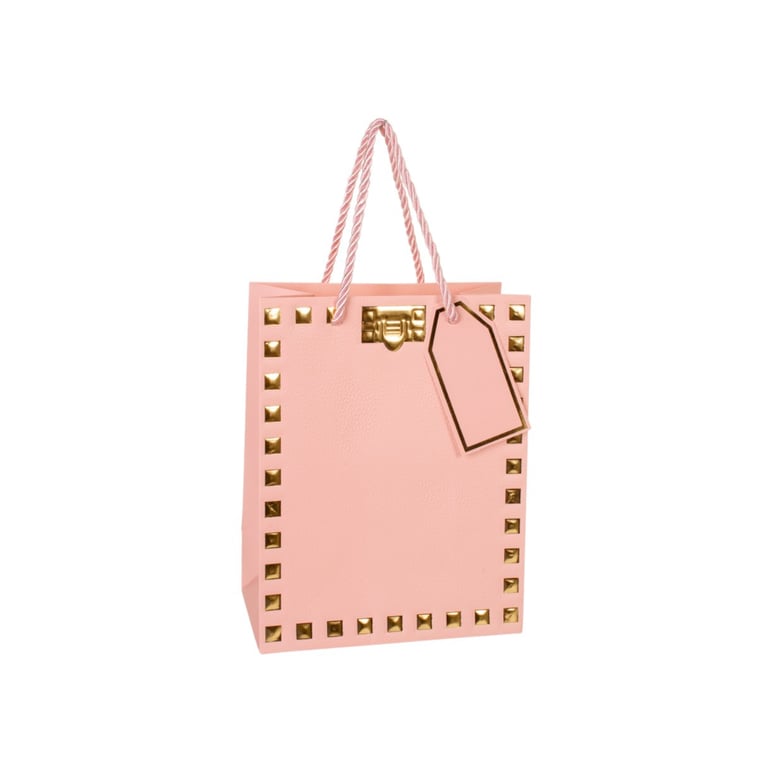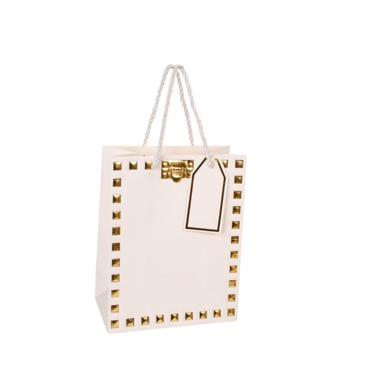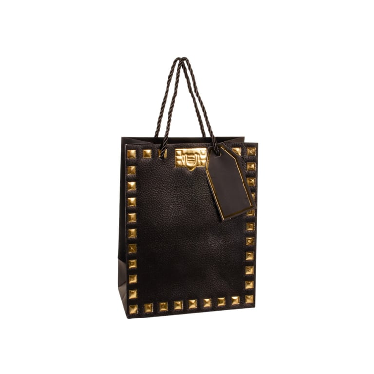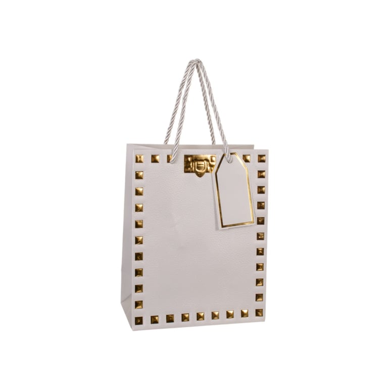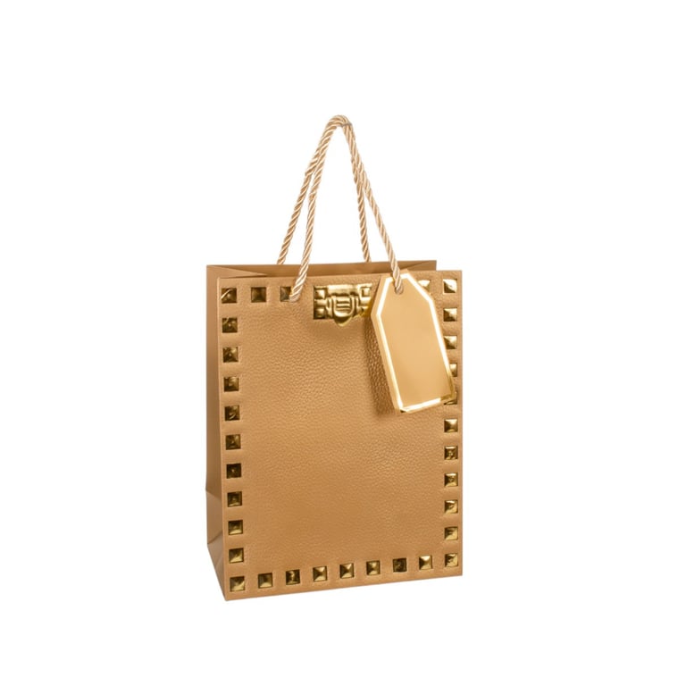 SACOLA PRESENTE 23X18X10 CM QUADRADOS DOURADOS CARTONADA