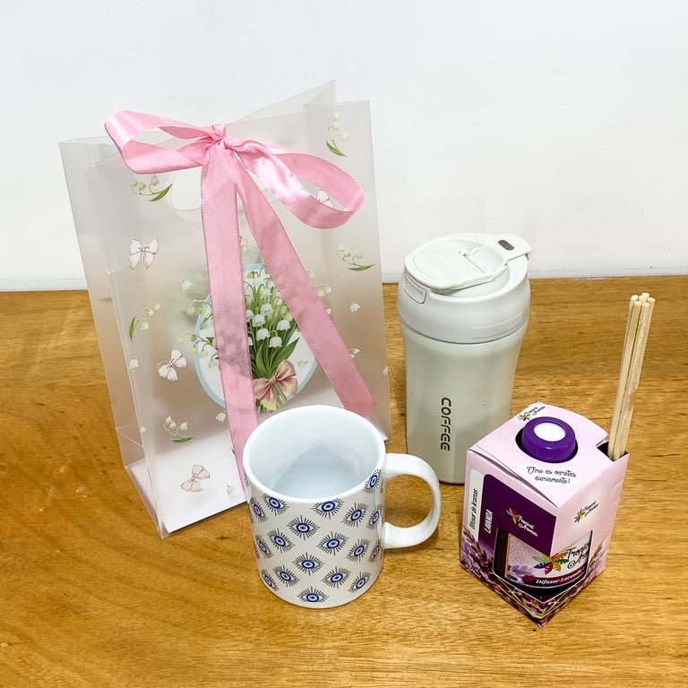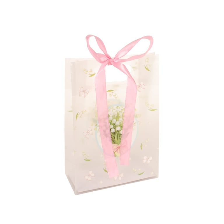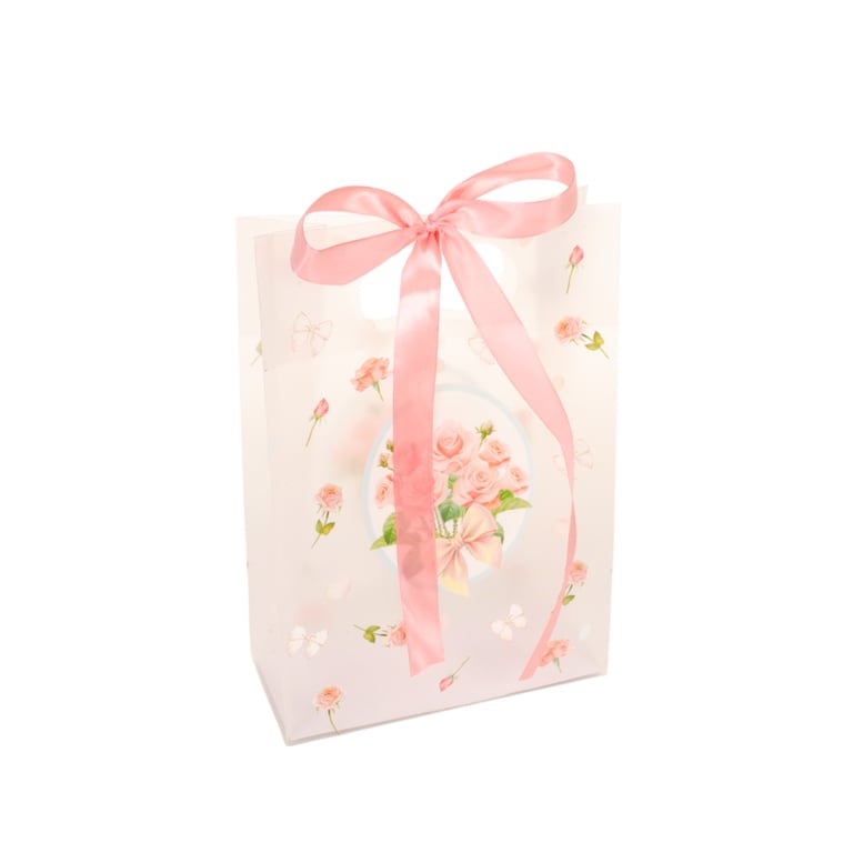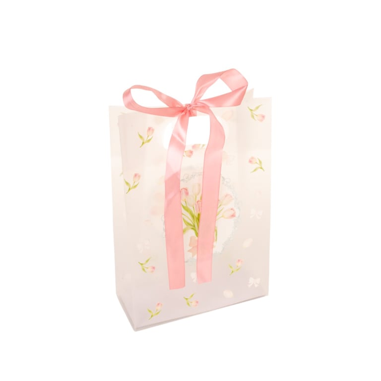 SACOLA PRESENTE 26X18X8 CM FLORES COM LAÇO CETIM PLÁSTICA