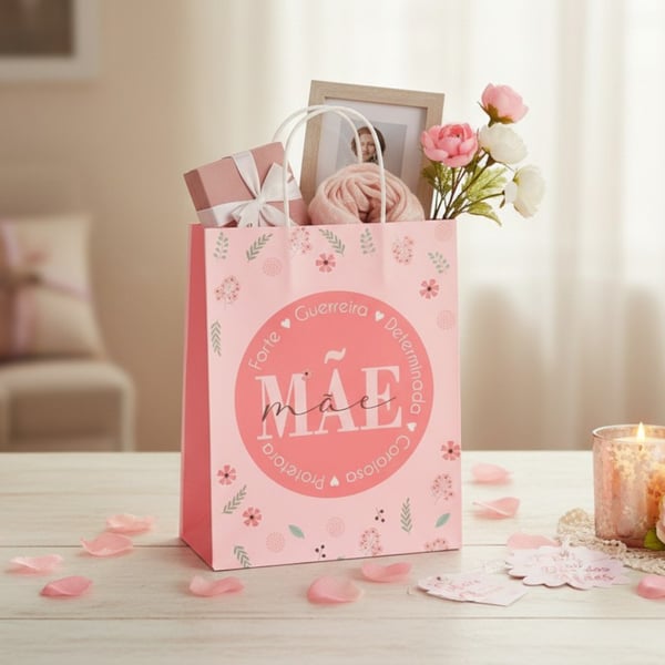 SACOLA PRESENTE 27X21X11 CM DECORADA MÃE FLEXÍVEL