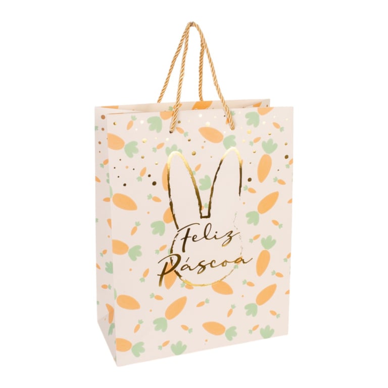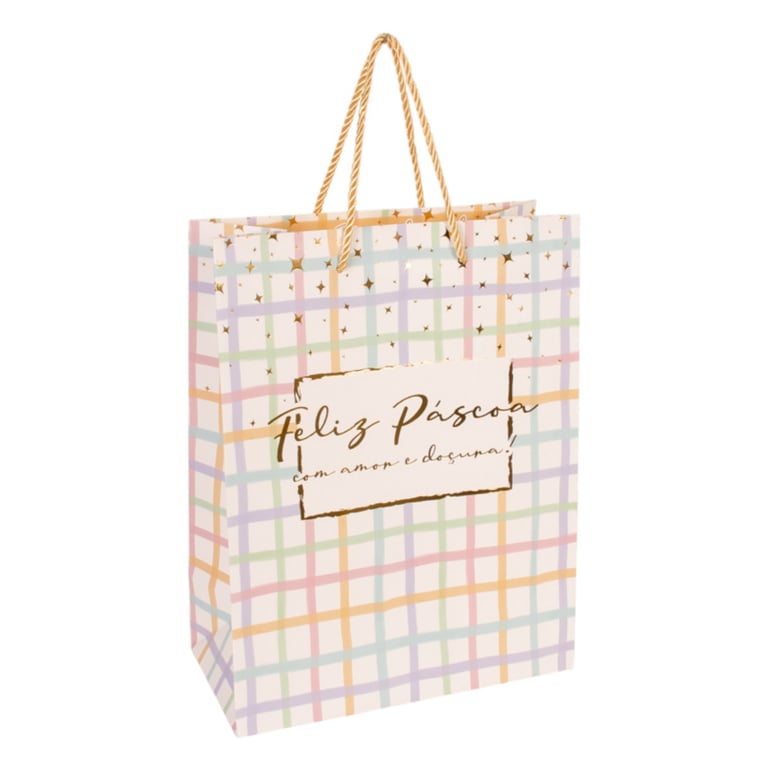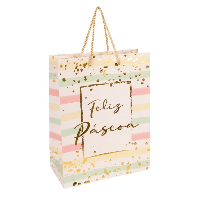 SACOLA PRESENTE 31X24X12 CM FELIZ PÁSCOA TONS PASTÉIS CARTONADA