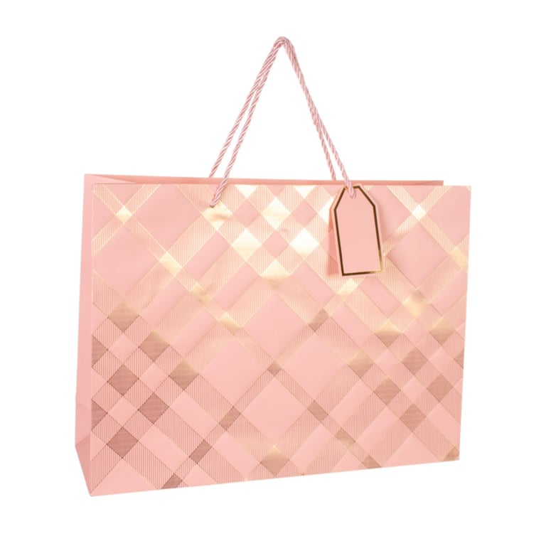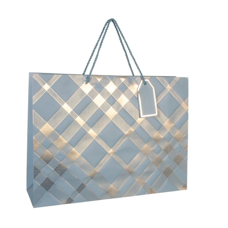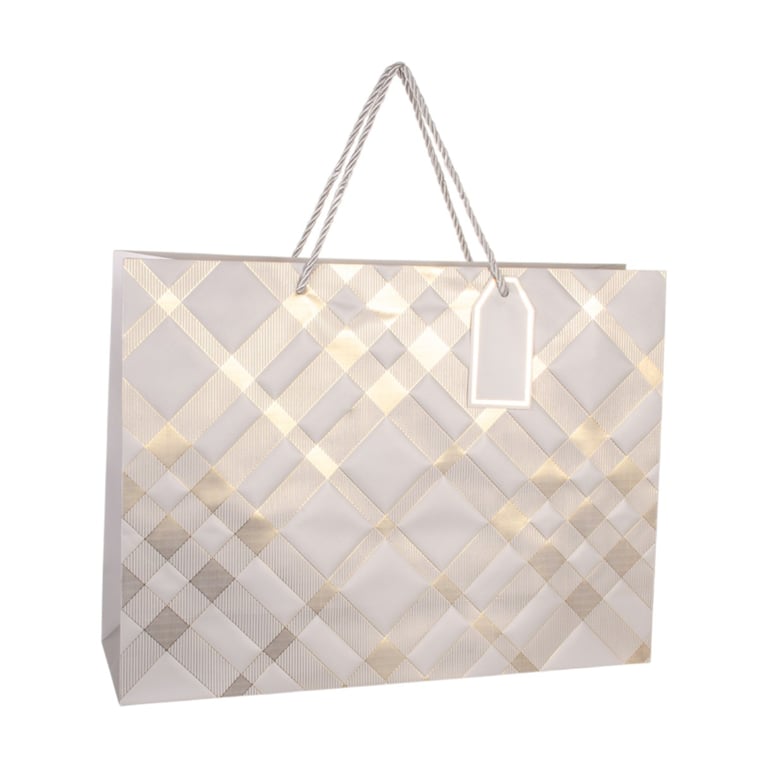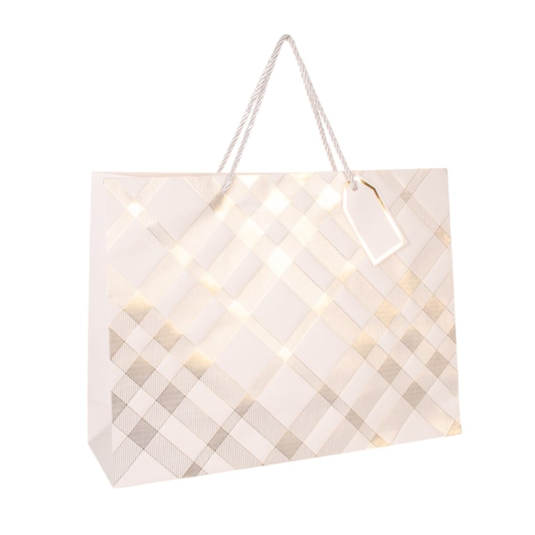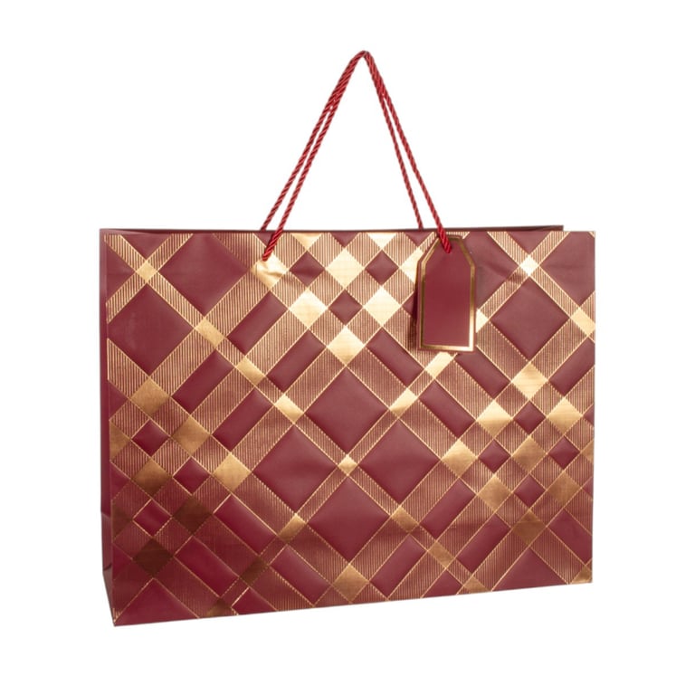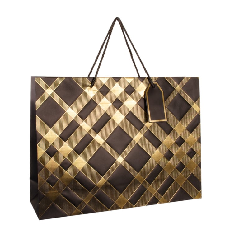 SACOLA PRESENTE 31X42X12 CM DETALHES METALIZADOS DOURADOS CARTONADA