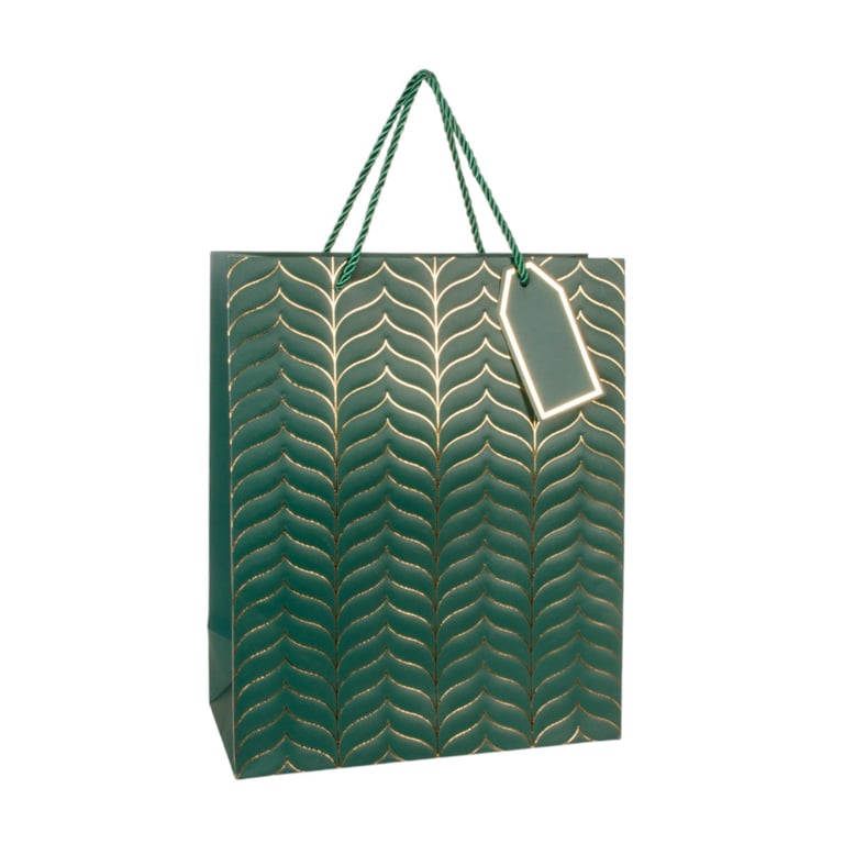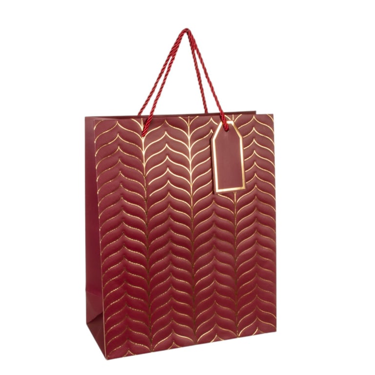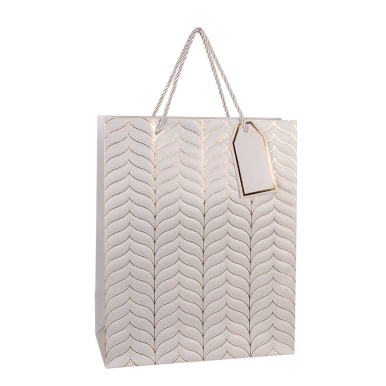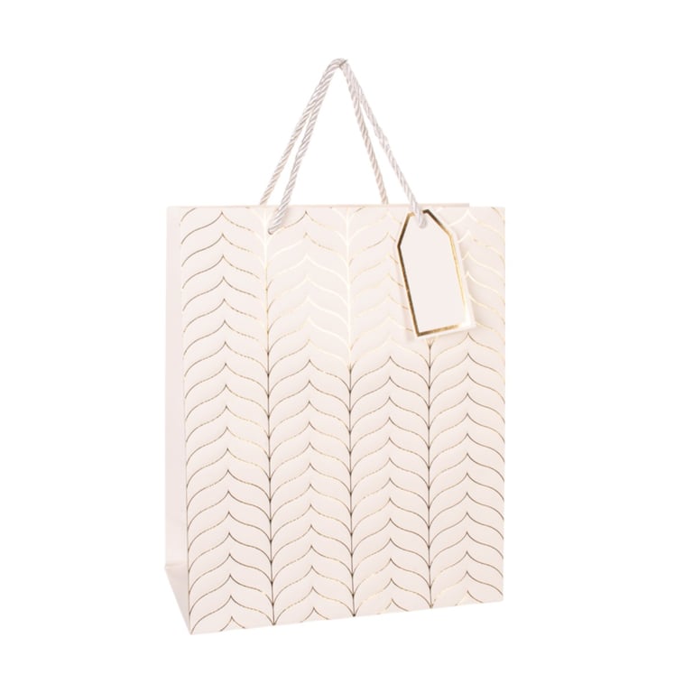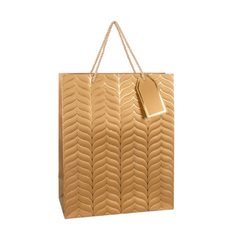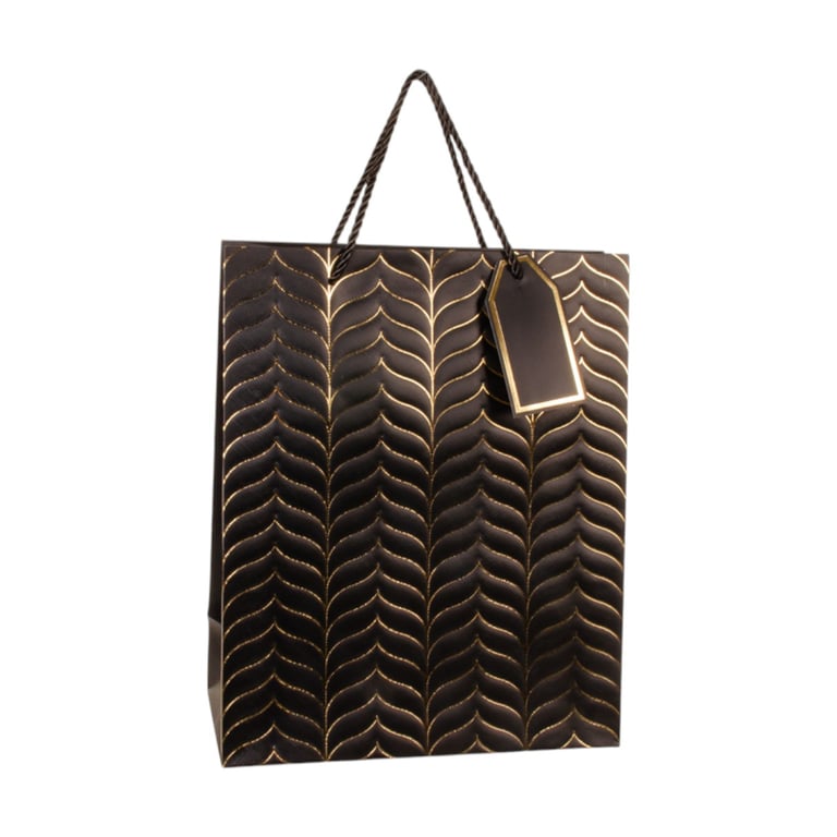 SACOLA PRESENTE 32X26X12 DETALHES METALIZADOS DOURADOS CARTONADA