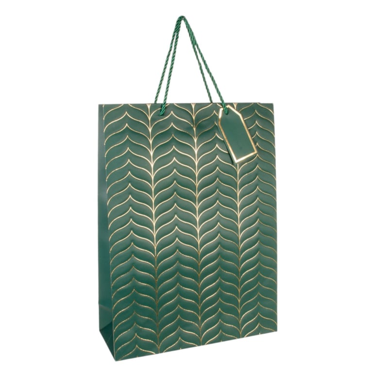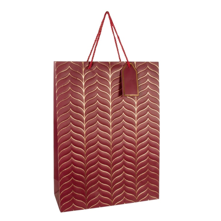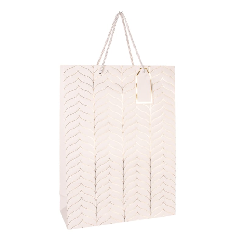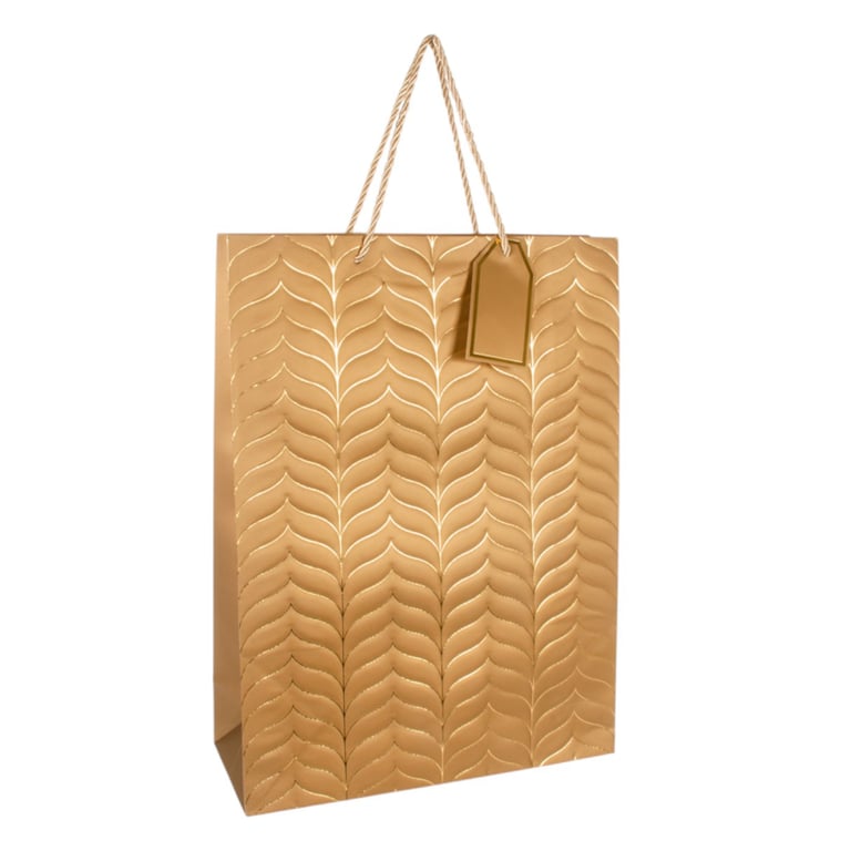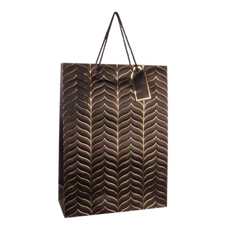 SACOLA PRESENTE 42X31X12 CM DETALHES METALIZADOS DOURADOS CARTONADA