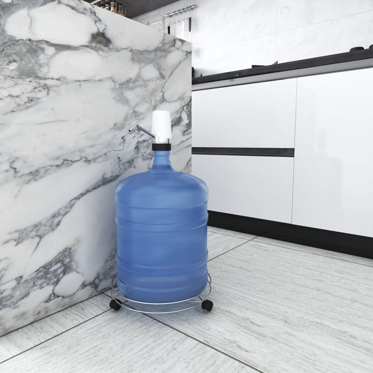 SUPORTE BOTIJÃO CROMADO 10X30 CM COM RODAS