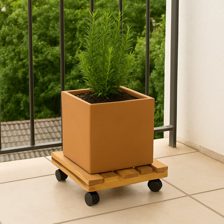 SUPORTE MADEIRA 8X30X30 CM PARA VASOS COM RODAS