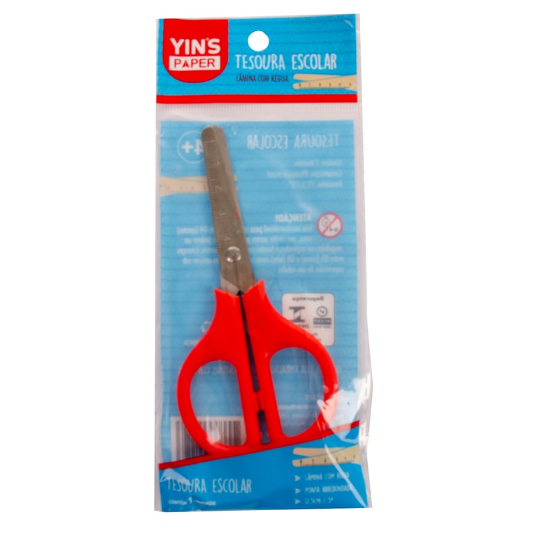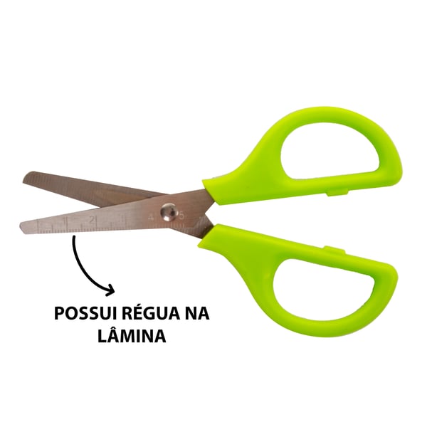 TESOURA ESCOLAR 12,5X5 CM LÂMINA COM RÉGUA SEM PONTA