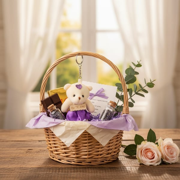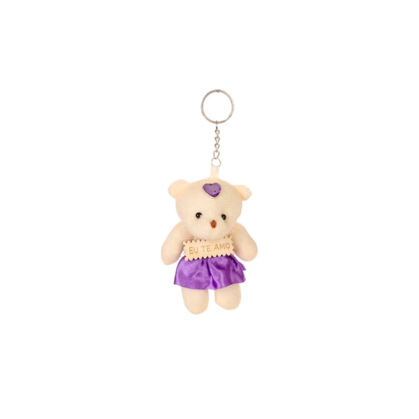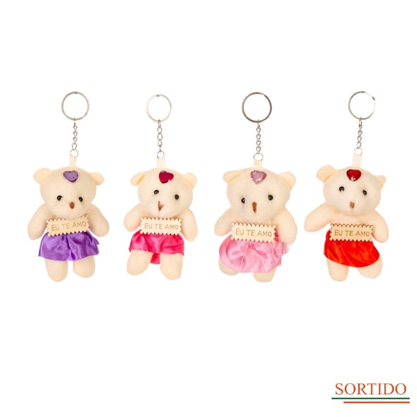 URSO PELÚCIA 10 CM PLACA EU TE AMO SAIA CETIM COM CHAVEIRO