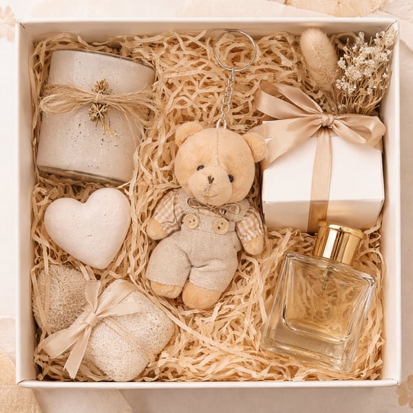 URSO PELÚCIA 12 CM ROUPA XADREZ / FLORAL COM CHAVEIRO
