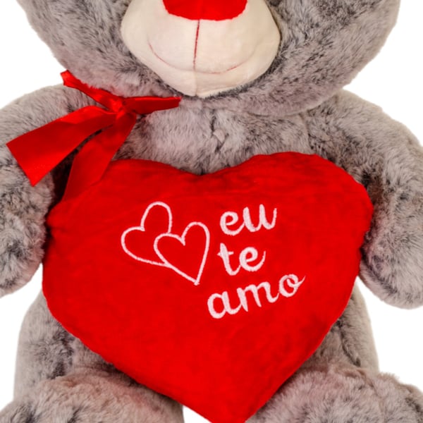 URSO PELÚCIA 38 CM MESCLADO CORAÇÃO EU TE AMO
