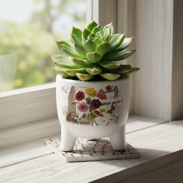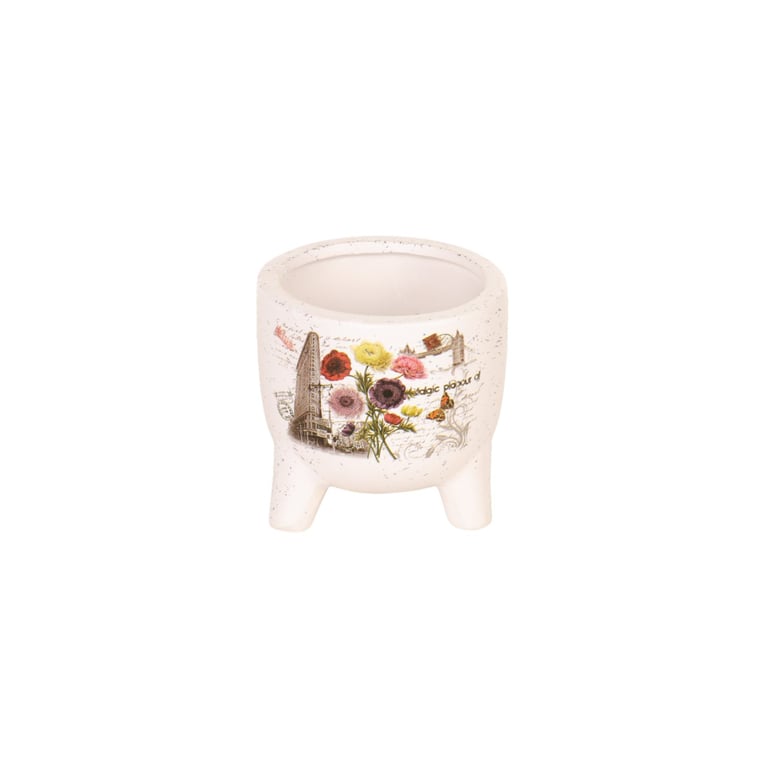 VASO / CACHEPÔ CERÂMICA 10X10 CM COM PÉS ESTAMPADO