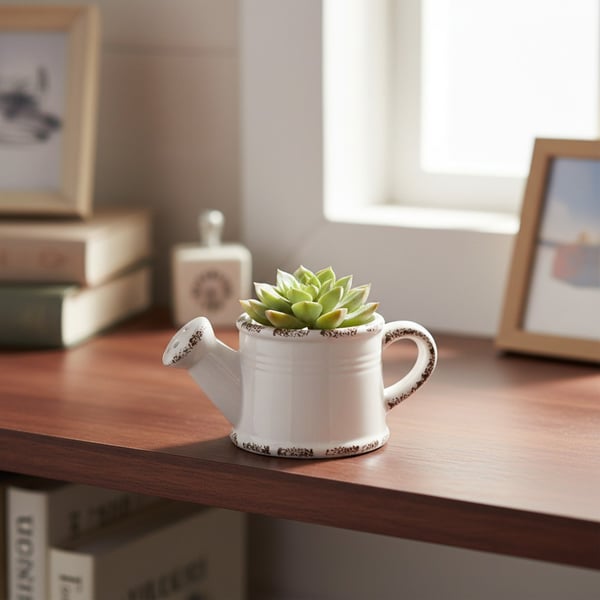 VASO / CACHEPÔ CERÂMICA KALANCHOE 6X14 CM REGADOR BRANCO RETRÔ