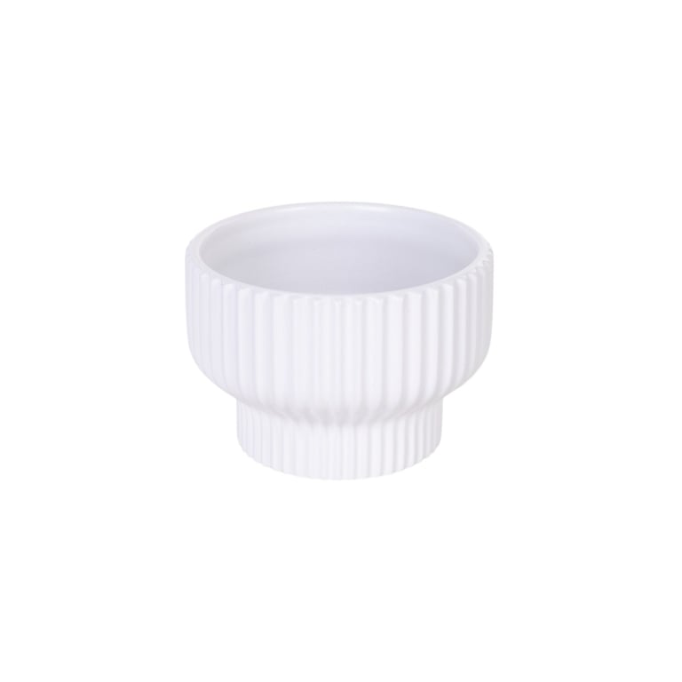 VASO / CACHEPÔ CERÂMICA VIOLETA 10X15 CM CANELADO BRANCO