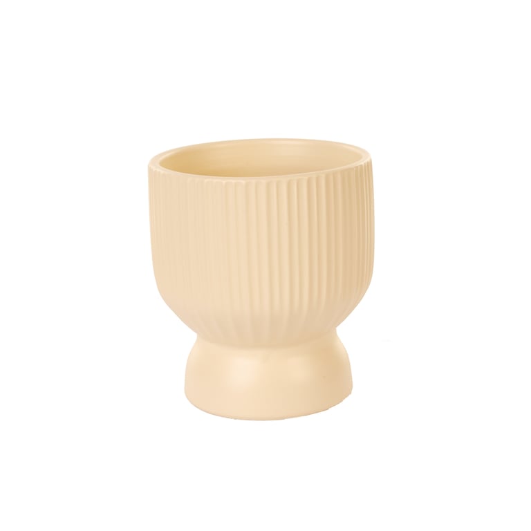 VASO / CACHEPÔ CERÂMICA VIOLETA 13X12 CM CANELADO TAÇA BEGE STRIPES CALICE