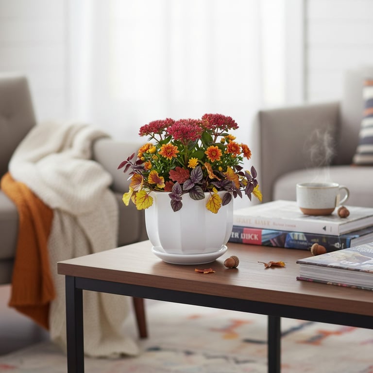 VASO / CACHEPÔ CERÂMICA VIOLETA 14X13 CM BRANCO COM PRATO