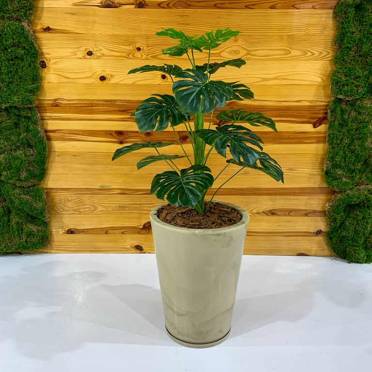 VASO / CACHEPÔ POLIETILENO 58X44 CM GENEBRA MARMORATO COM PRATO